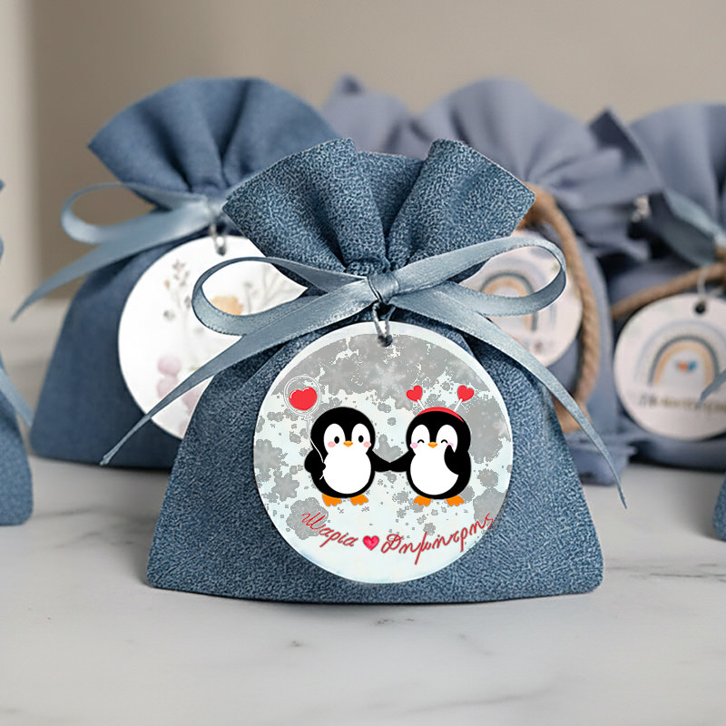 Ξύλινη Love Penguins για Μπομπονιέρες Βάπτισης